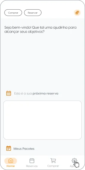 Ao fazer seu login, você será redirecionado para home, clique em “ajustes”.