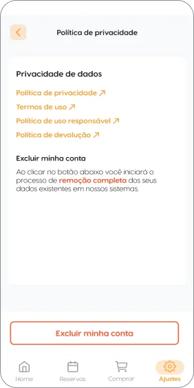 3 - Após abrir as opções de “Política de privacidade”, logo abaixo poderá ver o botão de “excluir minha conta.